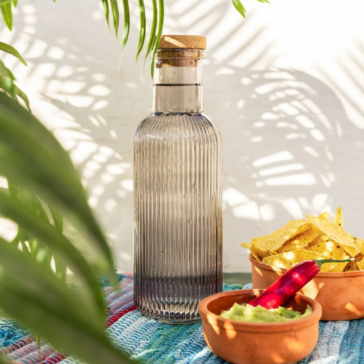 Karafka Natia Ryflowana Z Korkiem Szara 1 L