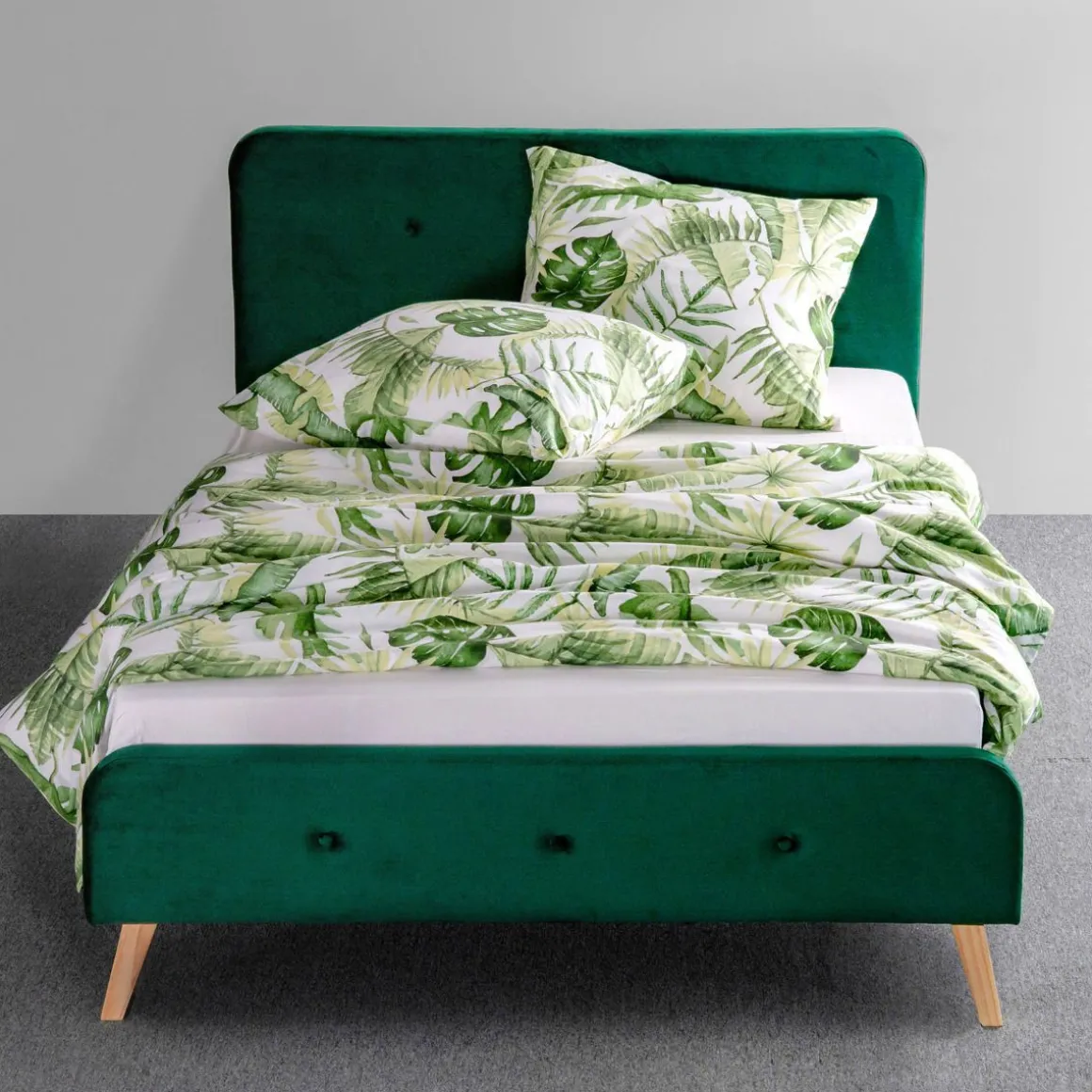 Dzięki Temu, Że Zagłówek Łóżka Mikkel Obity Jest Miękkim Welurem, Stanowi On Doskonałe Oparcie Dla Pleców – W Ten Sposób Łóżko Staje Się Idealnym Miejscem Do Czytania Książek Czy Oglądania Filmów. Płytka Rama Pozostawi Tylko Tobie Decyzję Na Temat Tego, Jaki Materac Będzie Dla Ciebie Najlepszy – Łóżko Jest Uniwersalne I Pozwala Na Zastosowanie Materaca O Dowolnej Grubości. Drewniane Nóżki Odnoszą Się Do Designu Lat 60-Tych I Znacznie Ułatwiają Sprzątanie.Materiał