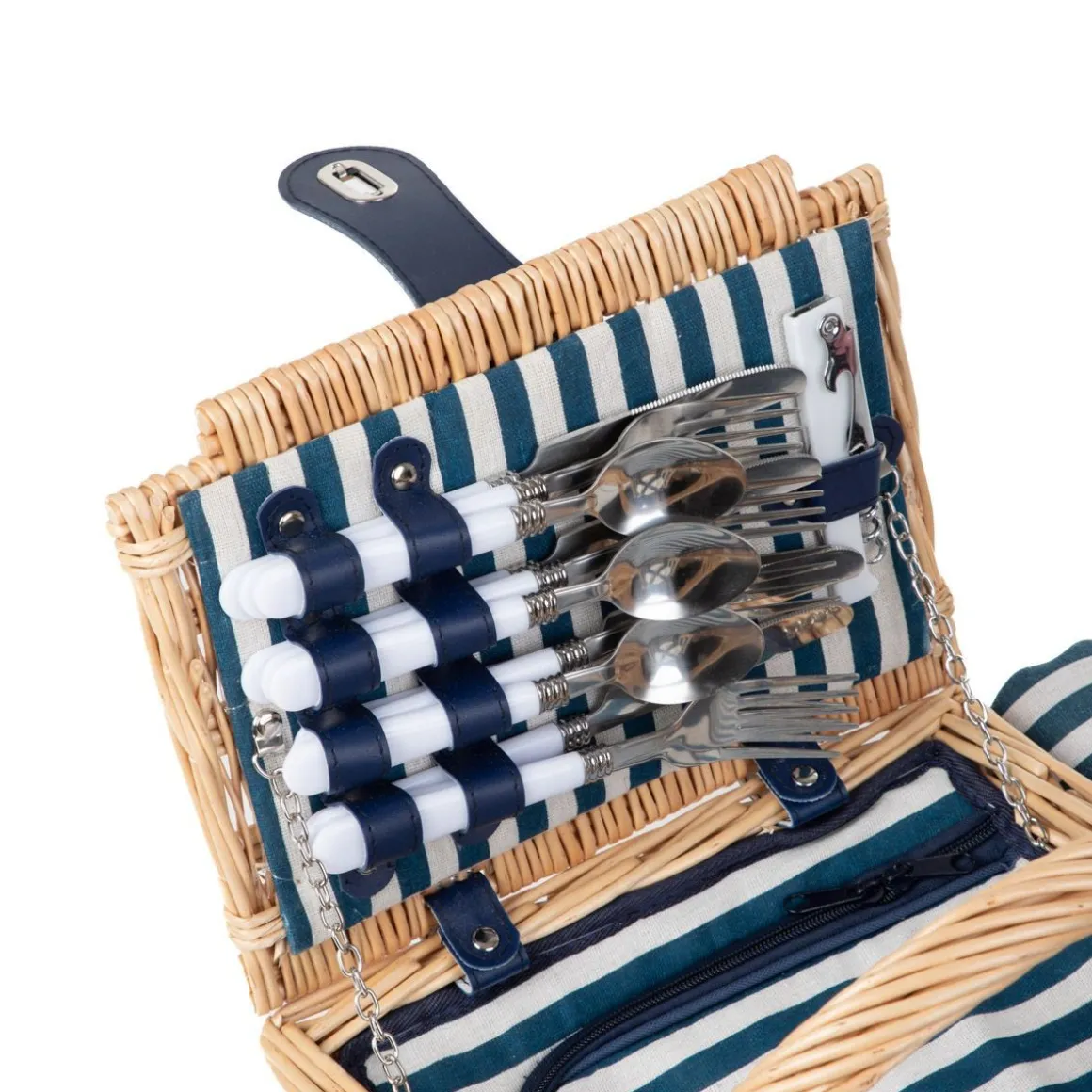 Wprowadź Akcent Marynistyczny Do Swoich Letnich Przygód Wraz Z Koszem Piknikowym Orlando. Wyjątkowy Design Z Podwójną Klapą, Ubarwiony W Granatowo-Białe Paski, Niesie Ze Sobą Echo Morskiej Bryzy I Bezkresnych Plaż. Przemyślana Konstrukcja I Wysoka Jakość Wykonania Gwarantują, Że Posłuży Ci Przez Wiele Lat, Stając Się Świadkiem Wielu Szczęśliwych Chwil Spędzonych Na Łonie Natury.Przeznaczenie