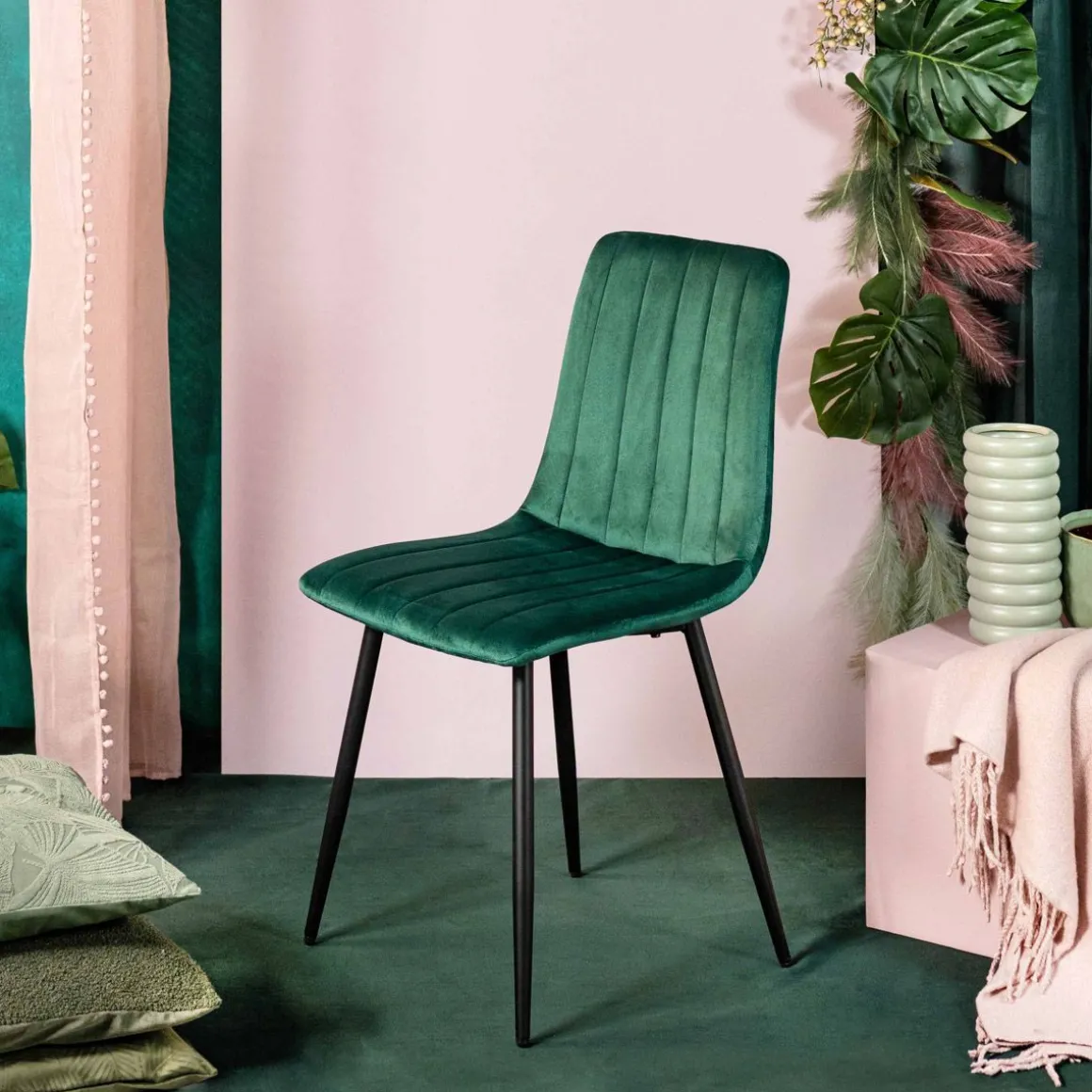Tym, Co Wyróżnia Krzesło Golick Jest Podłużne Pikowanie Na Oparciu Oraz Siedzisku. Siedzisko I Oparcie W Kształcie Litery L Osadzone Jest Na Nogach O Okrągłym Przekroju Zwężających Się Ku Dołowi. Butelkowa Zieleń Siedziska Tworzy Z Czernią Nóg Elegancką Całość.Wymiary Produktu Wynoszą 44 X 57 X 88 Cm.Materiały