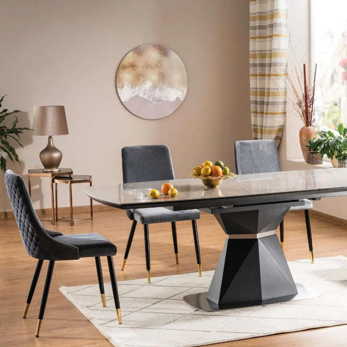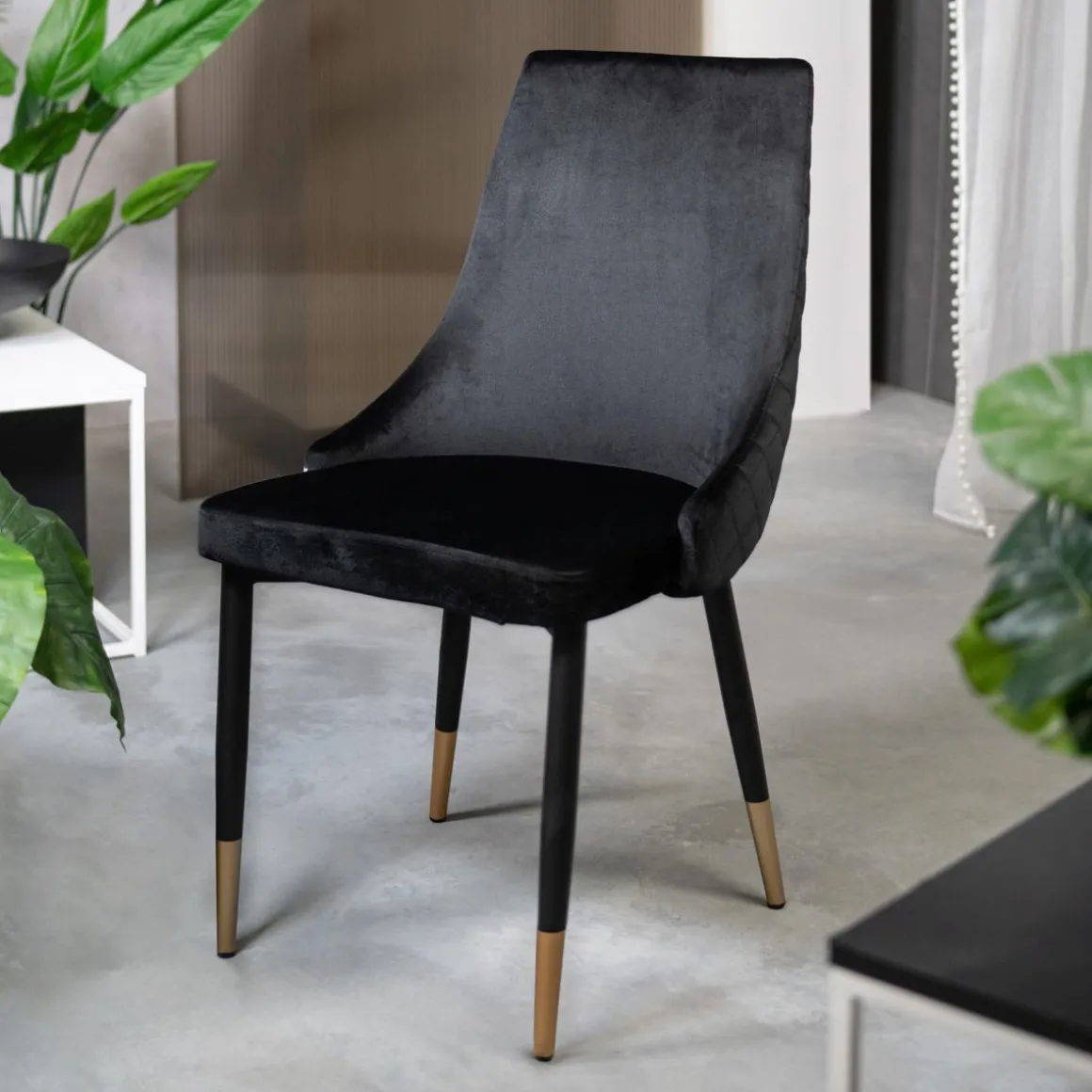 Opis ProduktuPrzeznaczenie Krzesło Logan Czarne To Wyjątkowy Produkt, Który Spodoba Się Każdemu Fanowi Minimalistycznych, Choć Eleganckich Rozwiązań. Niepozornie Prosta Bryła Ozdobiona Została Symetrycznym Pikowaniem Z Zewnętrznej Strony Oparcia. Krzesło Logan Sprawdzi Się W Każdym Pomieszczeniu – Zarówno Jadalni O Stonowanej Kolorystyce, Jak I Salonie O Mocnych Akcentach W Kolorze Musztardowym Lub Butelkowej Zieleni. Cechy Charakterystyczne Nowoczesne Krzesło Logan To Wyjątkowe Połączenie Eleganckiej Prostoty Z Wyrafinowanym Elementem – Złotymi Nogami. Szerokie Siedzisko I Wygięte, Zwężające Się Ku Górze Oparcie Podtrzymywane Są Przez Cztery Proste Nogi O Okrągłym Przekroju. Najbardziej Rzucającym Się W Oczy Elementem Ozdobnym Są Symetryczne Pikowania W Kształcie Rombów, Które Pokrywają Całą Zewnętrzną Powierzchnię Oparcia. Welurowe Krzesło Logan Ma Wymiary 44X44X92 Cm. Materiał Mebel Obity Został Welurową Tkaniną W Odcieniu Głębokiej Czerni. Dzięki Temu Jest Wytrzymały Na Przecieranie Się, A Także Łatwo Go Wyczyścić – Wystarczy Przemyć Wilgotną Szmatką. Metalowe Nogi Podkreślają Industrialny Charakter Produktu.
