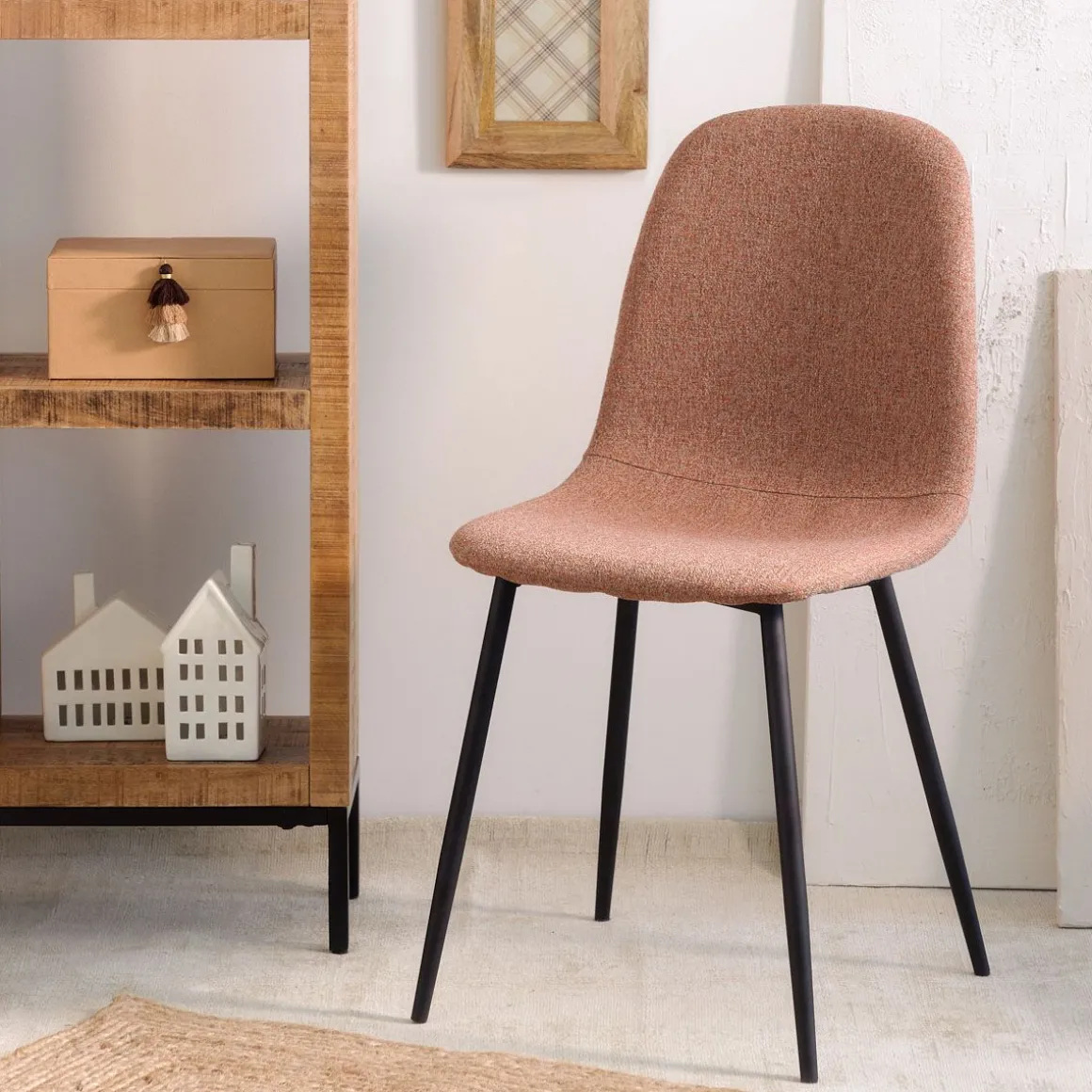 Krzesło Tapicerowane Tkaniną W Ceglastym Kolorze