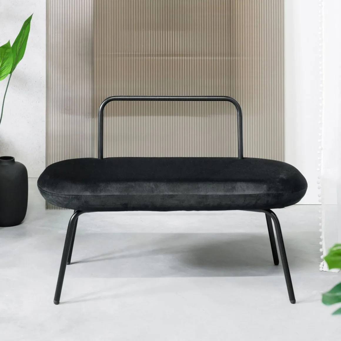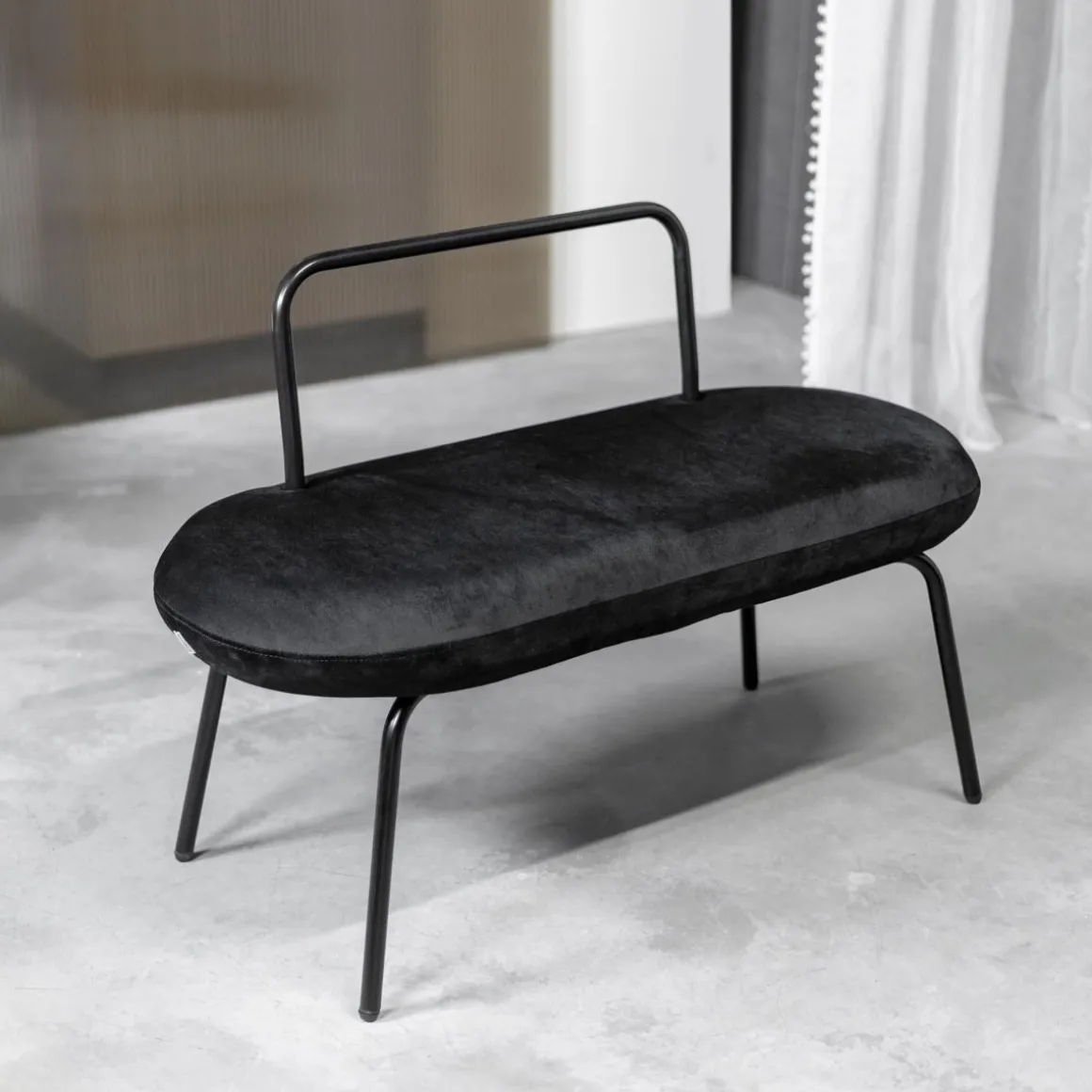 Ławka Do Przedpokoju, Salonu I Pokoju Dziennego Homla Ina. Nowoczesny Mebel, Stylowo Łączący Miękkość Weluru Z Elementami Stalowymi W Kolorze Czarnym. Ławka Ułatwi Zakładanie I Zdejmowanie Butów, Będzie Dodatkowym Miejscem Do Siedzenia, A Także Posłuży Jako Komfortowy Podnóżek Podczas Odpoczynku W Fotelu, Na Sofie, Czy Narożniku.Cechy Charakterystyczne