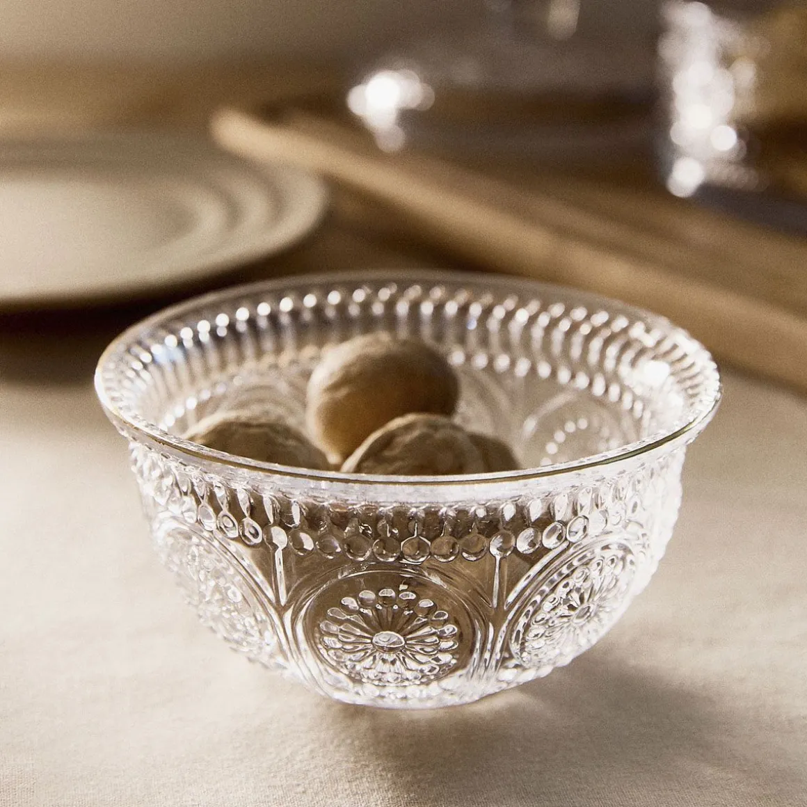 - Przejrzyste Szkło Z Okazałymi Zdobieniami Wykończone Złotą Krawędzią