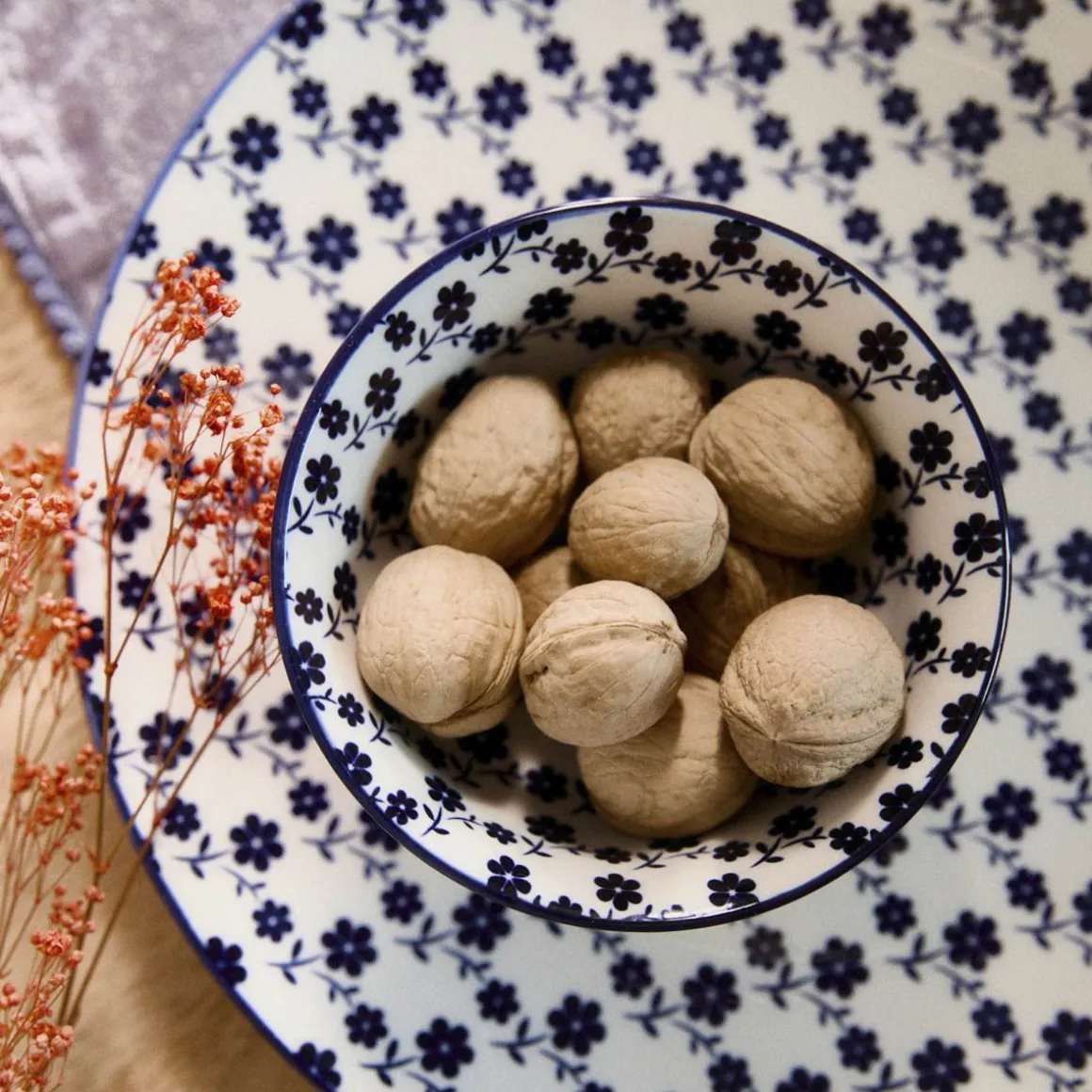 - Uroczy Wzór W Granatowe Kwiaty