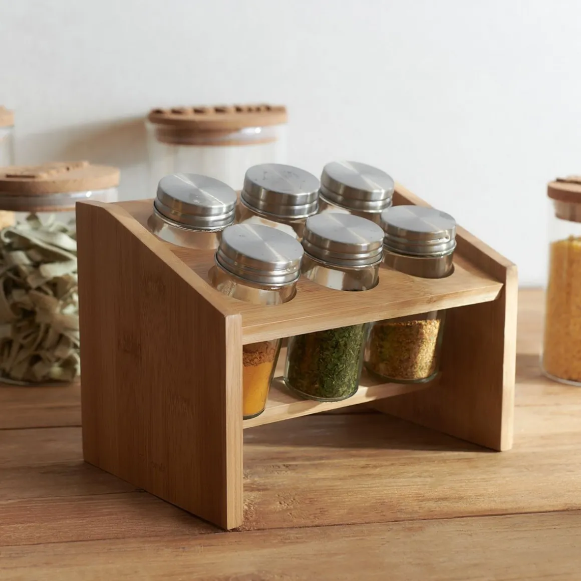 Zestaw Przyprawnikow Mooka Bambusowych Na Stojaku 6 Sloiczkow 14X21Cm